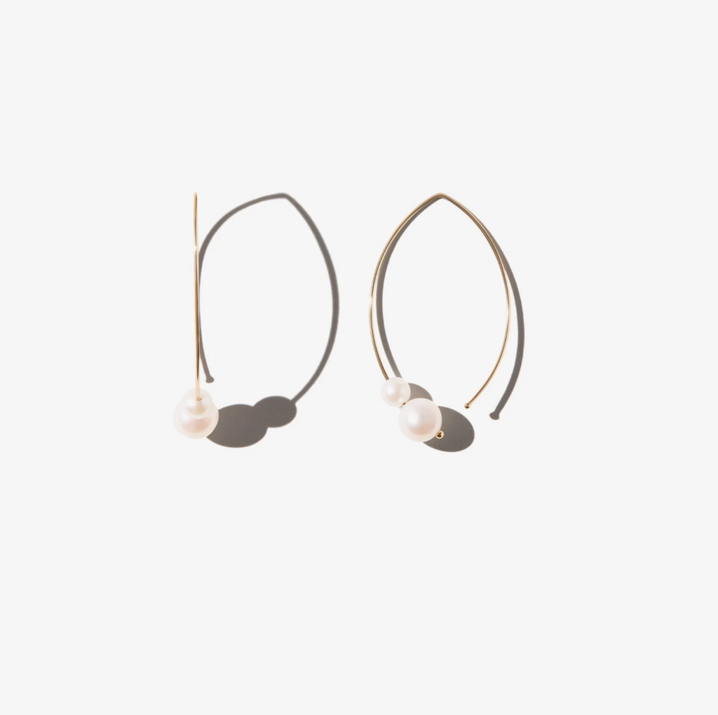 Sea of Beauty Medium Kissing Pearl Open Marquis Earrings