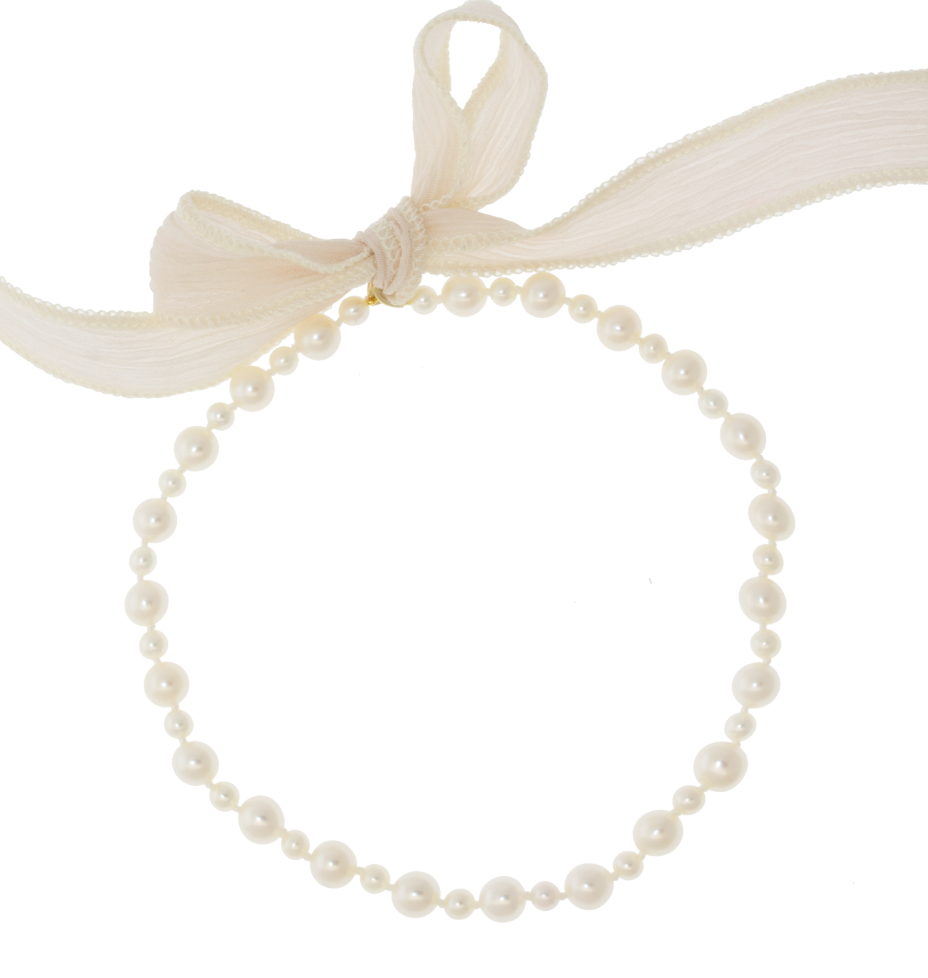 Sea of Beauty. White Silk and Diamond Pearl Collar