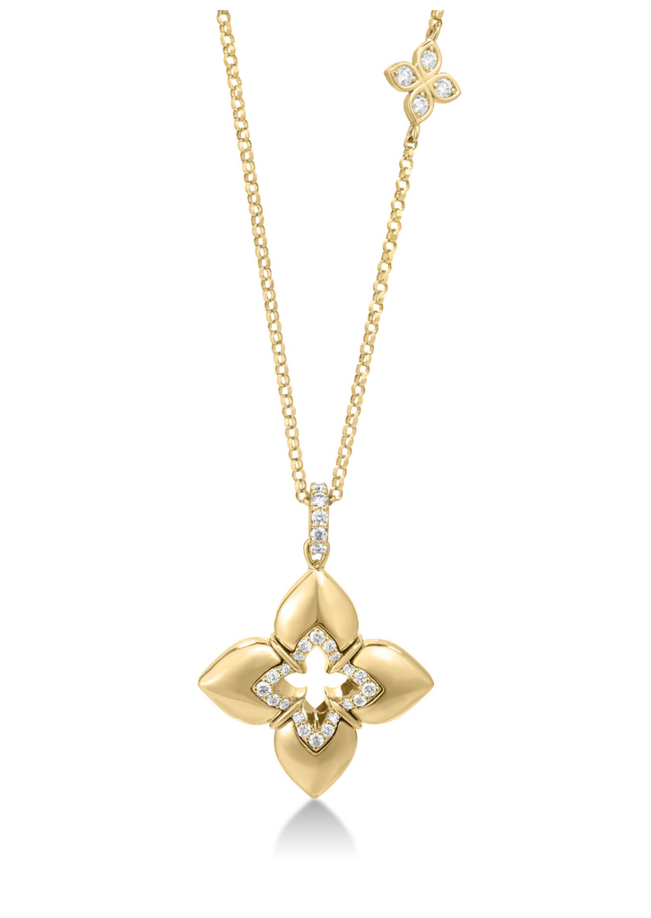 Venetian Princess Satin Medallion With Flower Cutout & Diamond Accent on Chain