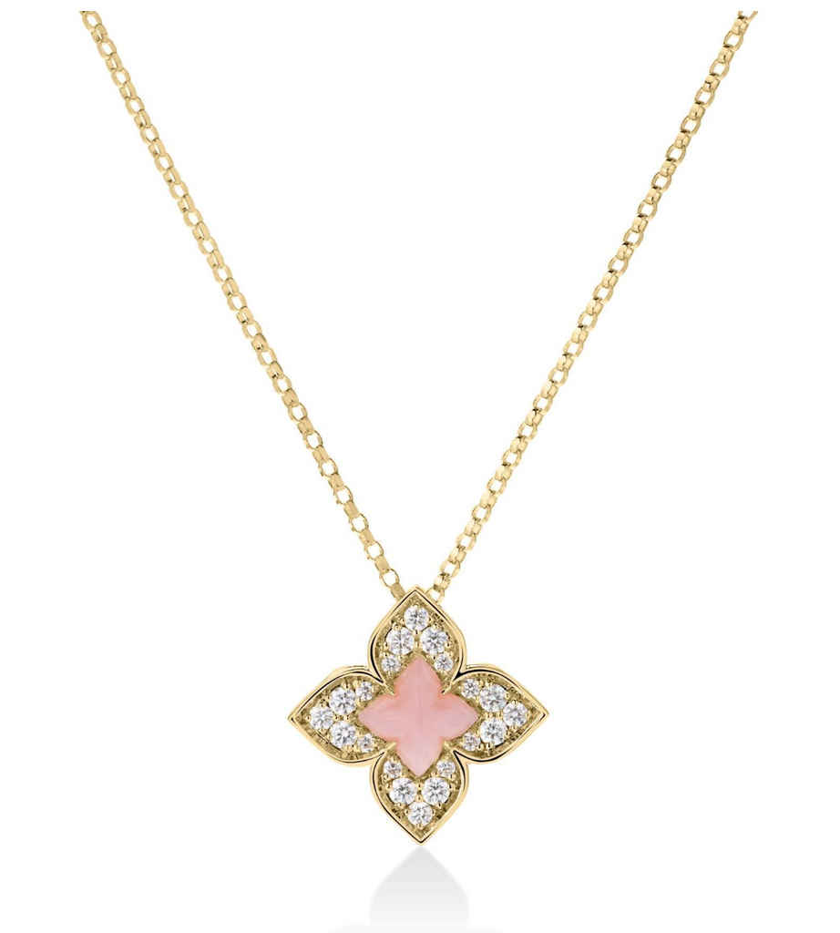Venetian Princess Pink Opal & Diamond Necklace in 18K Yellow Gold