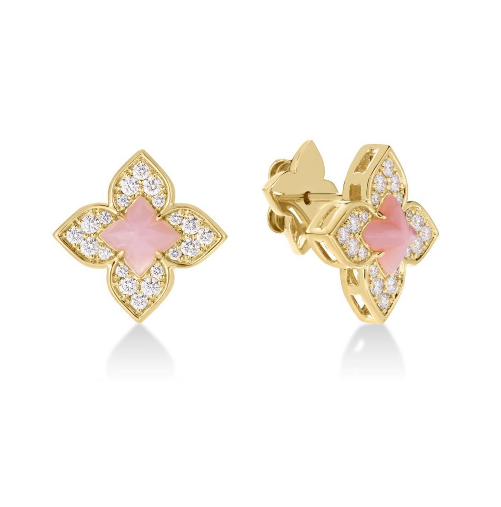 Venetian Princess Pink Opal & Diamond Earrings in 18K Yellow Gold