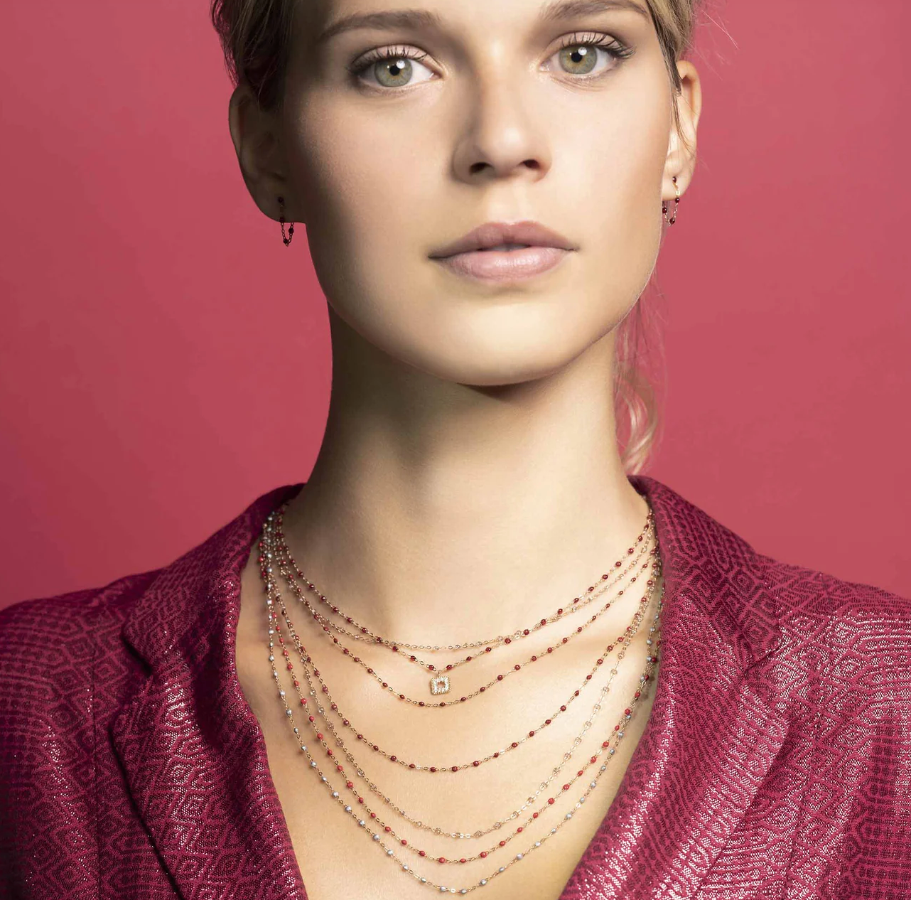 The Classic Gigi necklace by gigi CLOZEAU features 18 carat Yellow Gold, and striking Cherry jewels for an everyday effortless appearance.