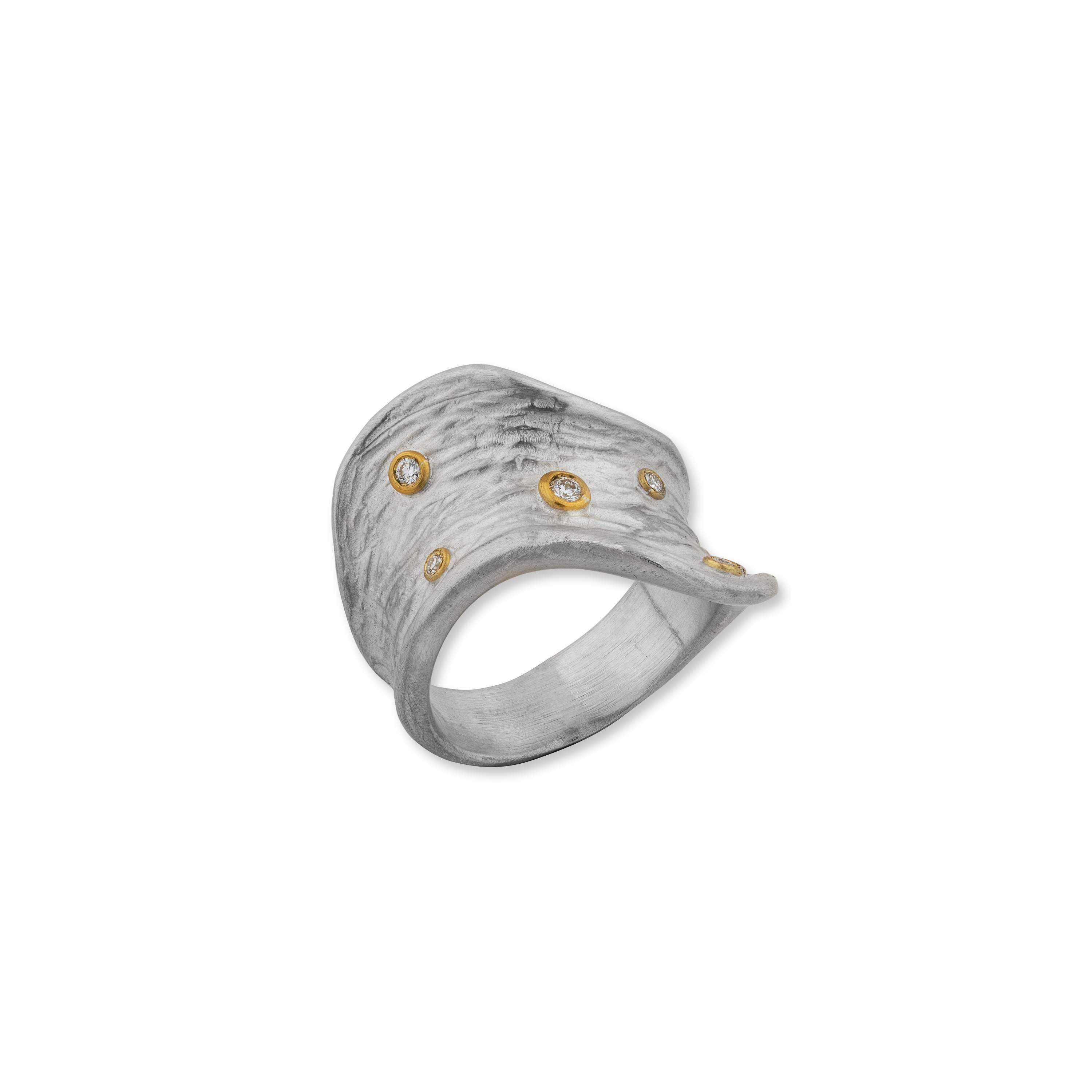 Crafted with rich texture and lustrous detail, the Bark Ring from Lika Behar features a 24K gold and oxidized sterling silver composition with diamond accents totaling approximately 0.08 ct. Its organic design echoes handcrafted artistry from the atelier.