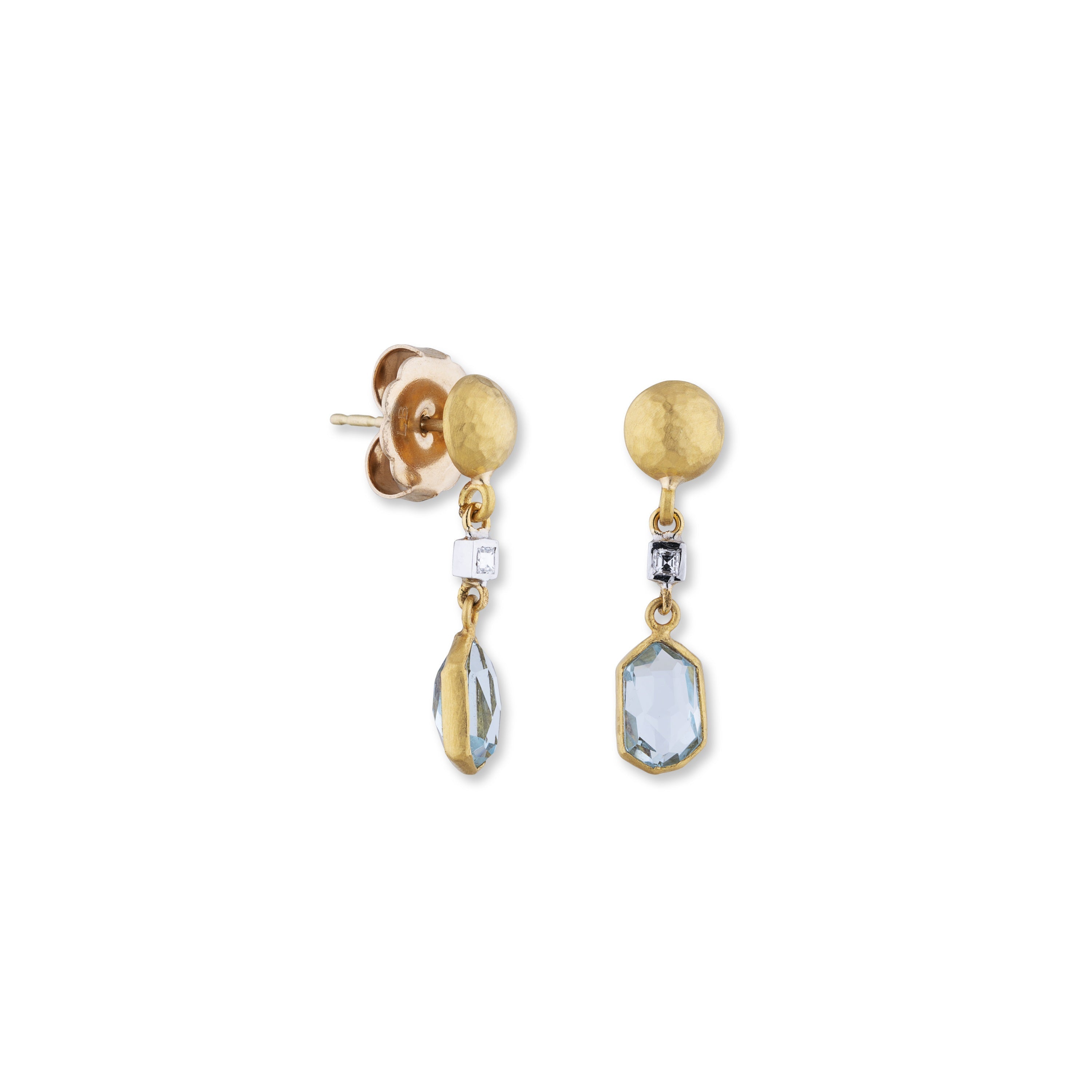 The Lika Behar Deco Earrings feature 3.10 ct of blue topaz accented by diamonds totaling about 0.07 ct. With 24K and 18K gold posts and backings, they combine radiant color and refined craftsmanship.