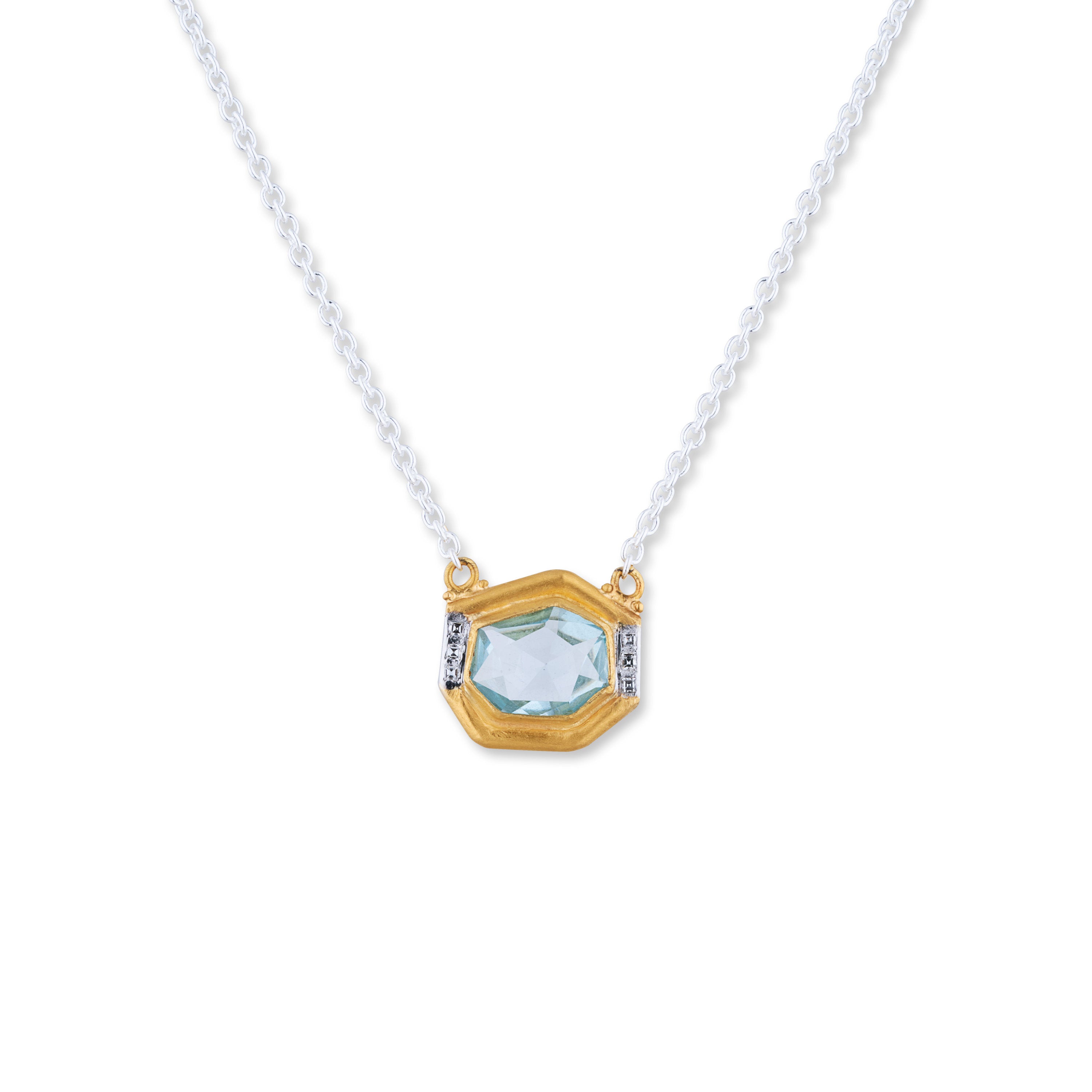 Lika Behar Deco Sky Blue Topaz & Diamond Necklace
