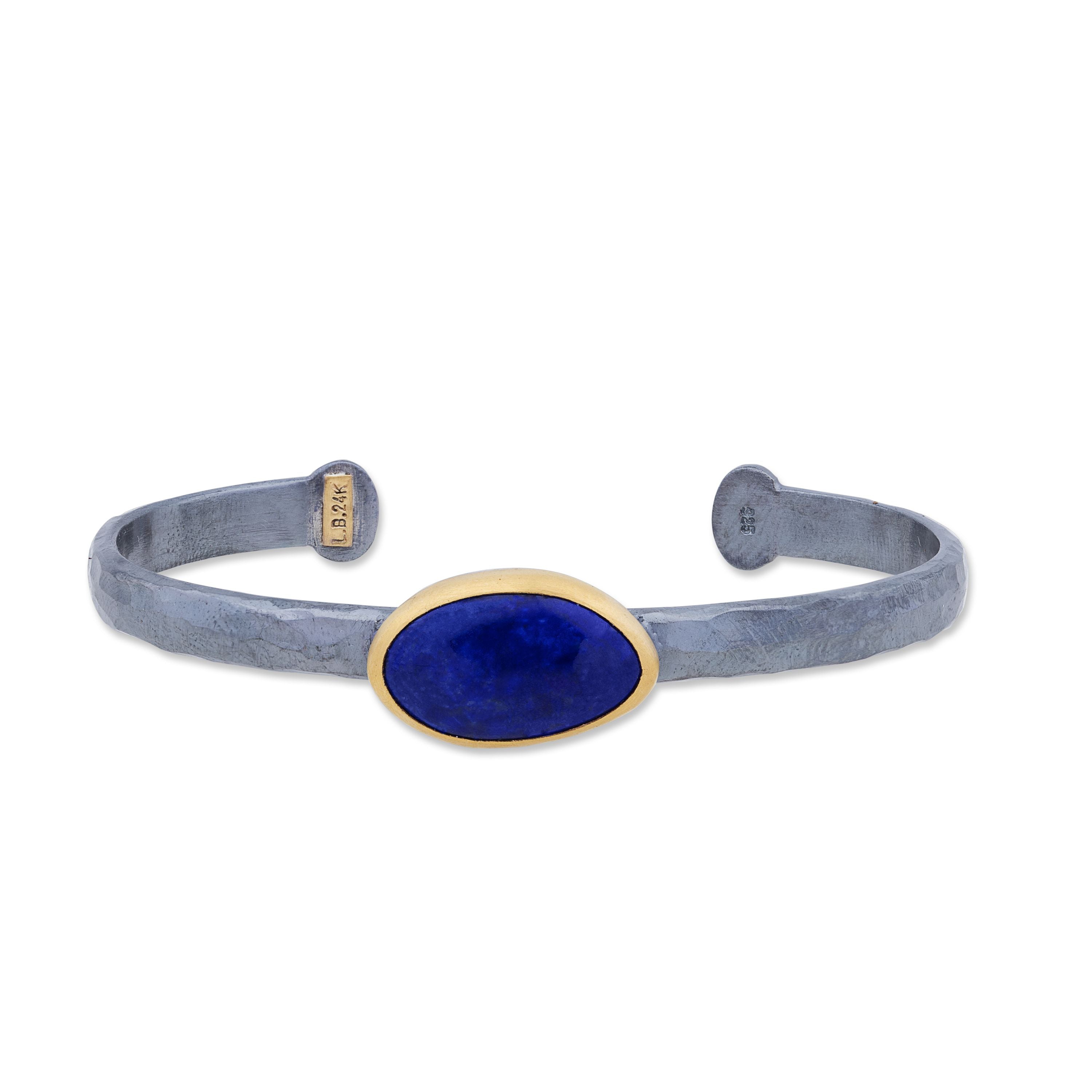 This Katya Cuff Bracelet from Lika Behar showcases a dramatic 9.91 ct cabochon lapis, set in oxidized sterling silver with rich 24K gold accents. Its bold design embodies the brand’s tactile modernism and artisan heritage.