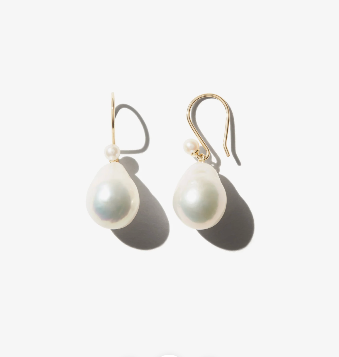 Gold earrings with a beautiful minimalist simplicity. Teardrop pearls drop from a French wire with a pearl accent.