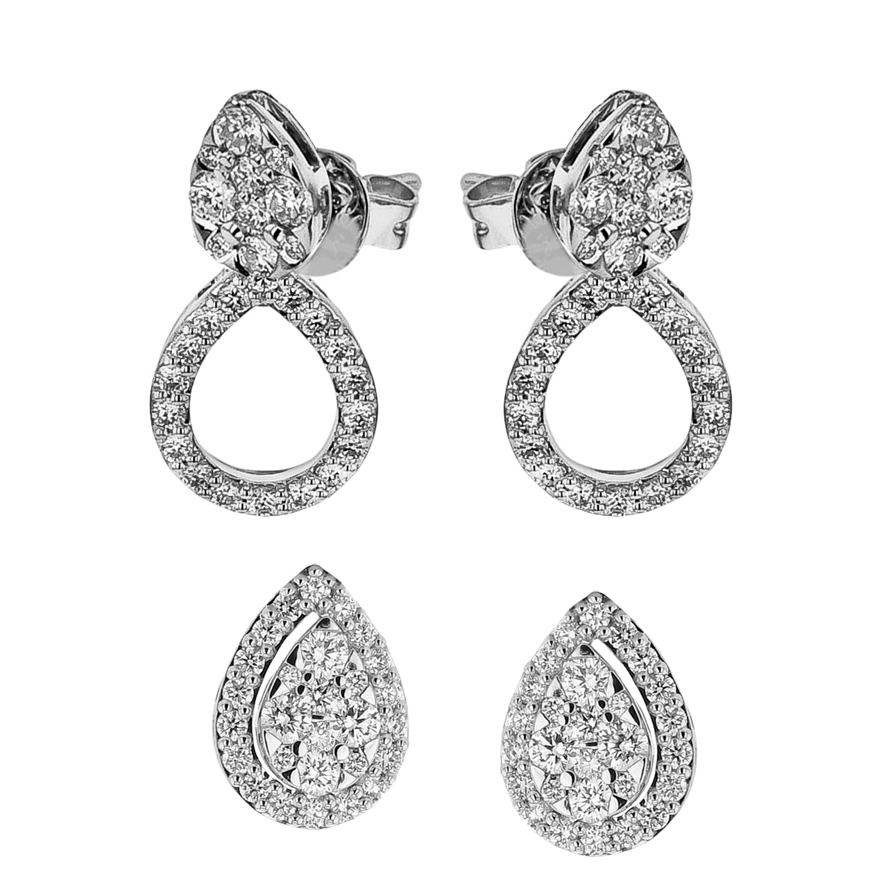 Diamond teardrop halo drop earrings featuring pavé-set diamonds in a timeless silhouette.