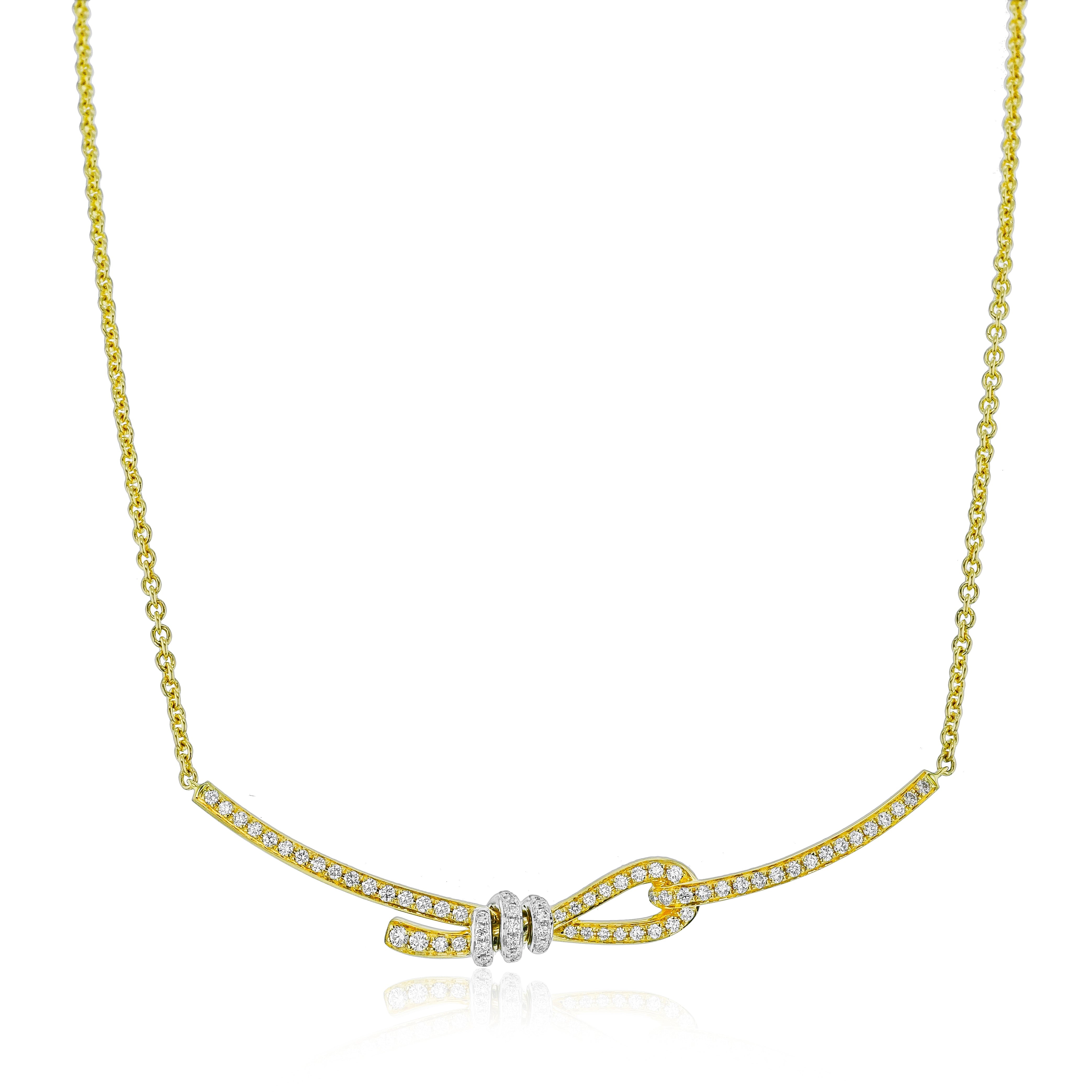 Two-tone diamond knot necklace symbolizing elegance and connection.