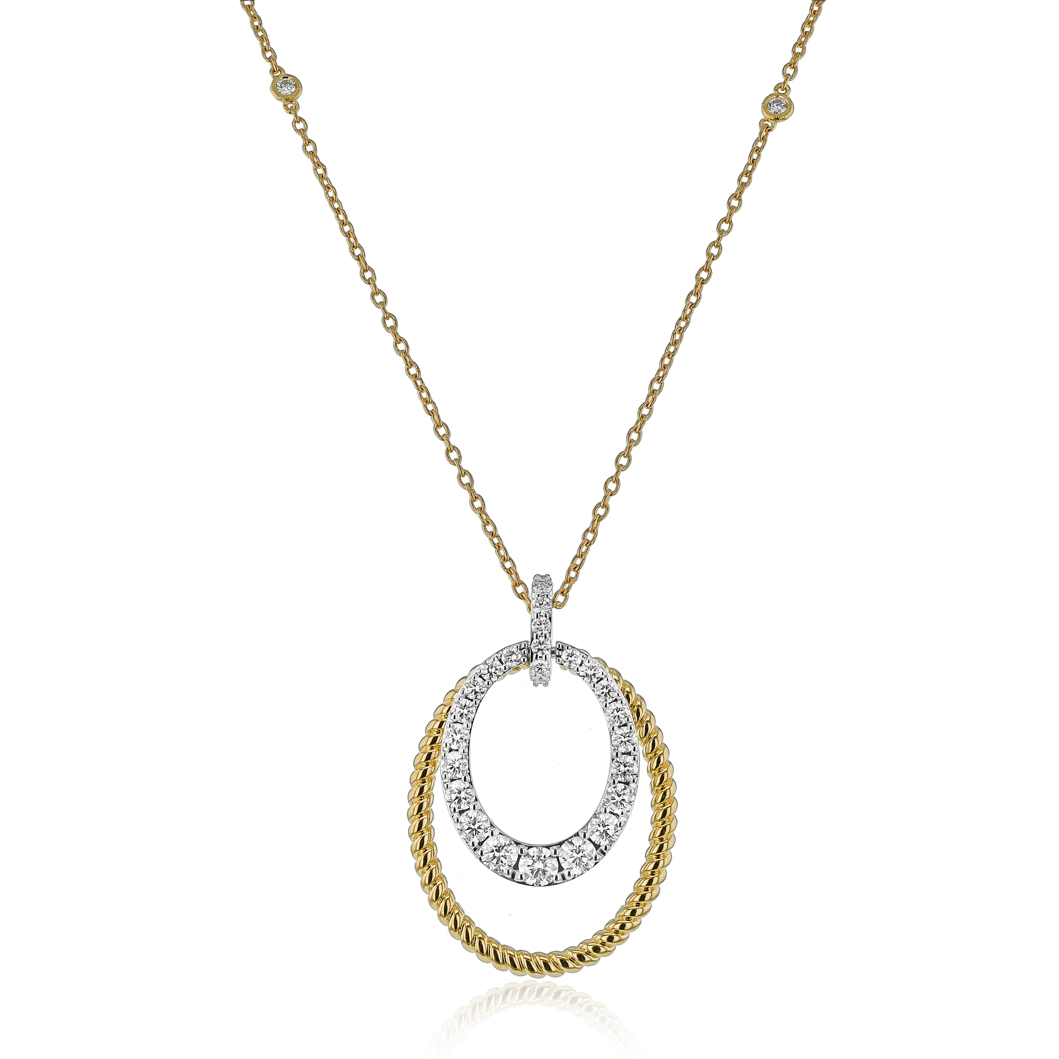 Crafted in 18K two-tone gold, this Simon G necklace features diamond. Total diamond weight approx. 0.48 ct.