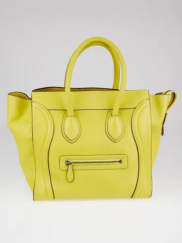 Celine Drummed Leather Micro Luggage Bag Citron